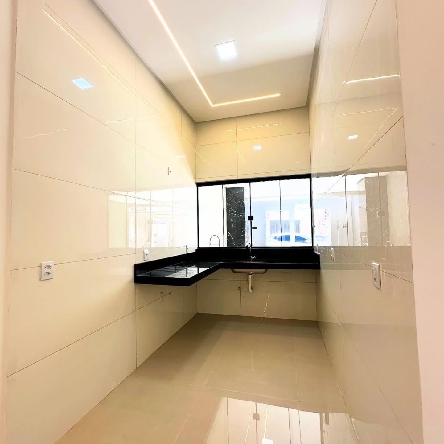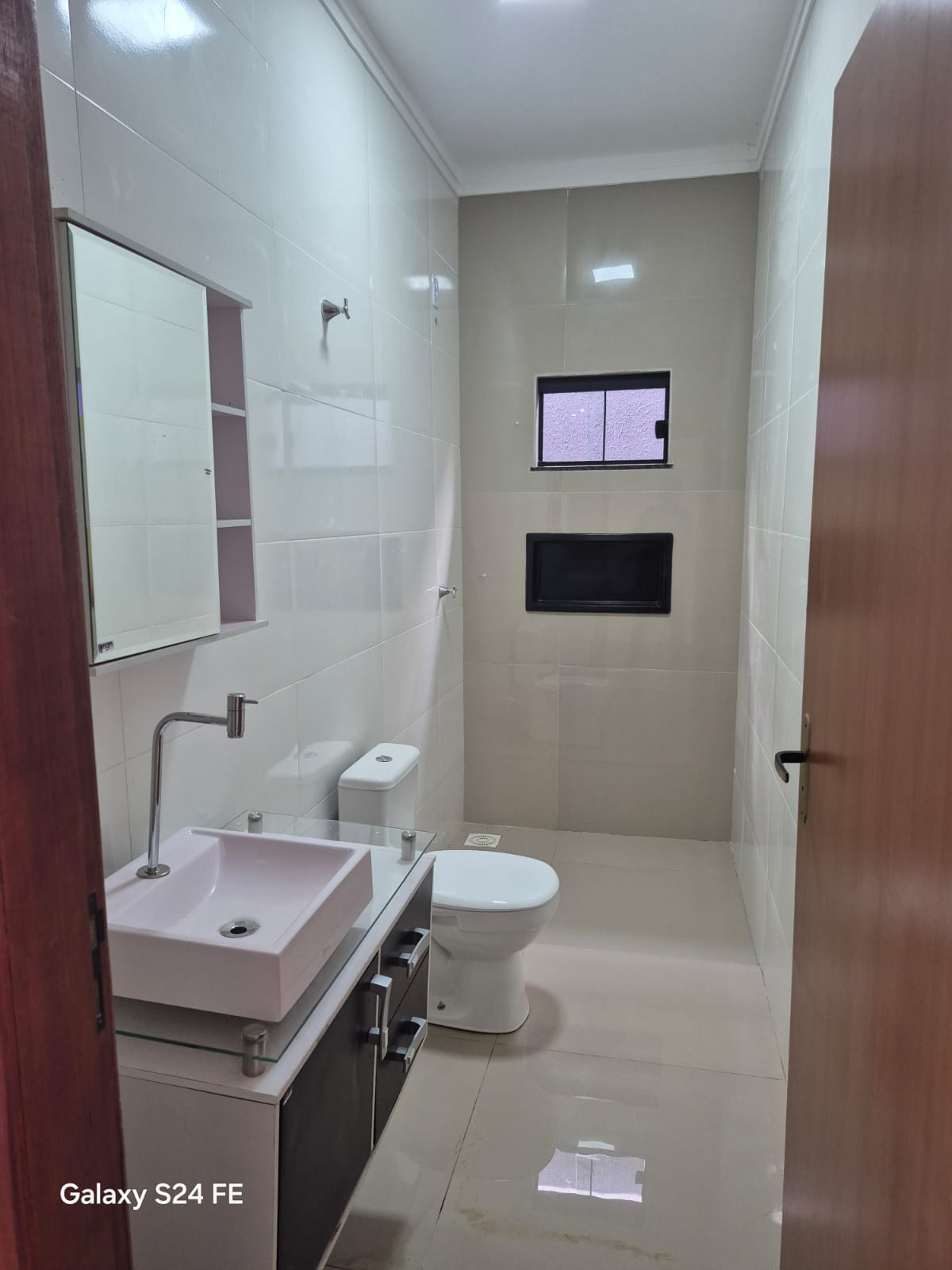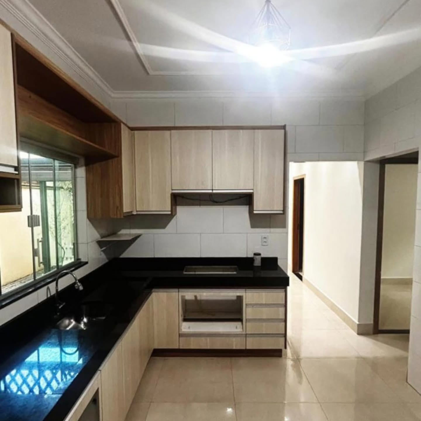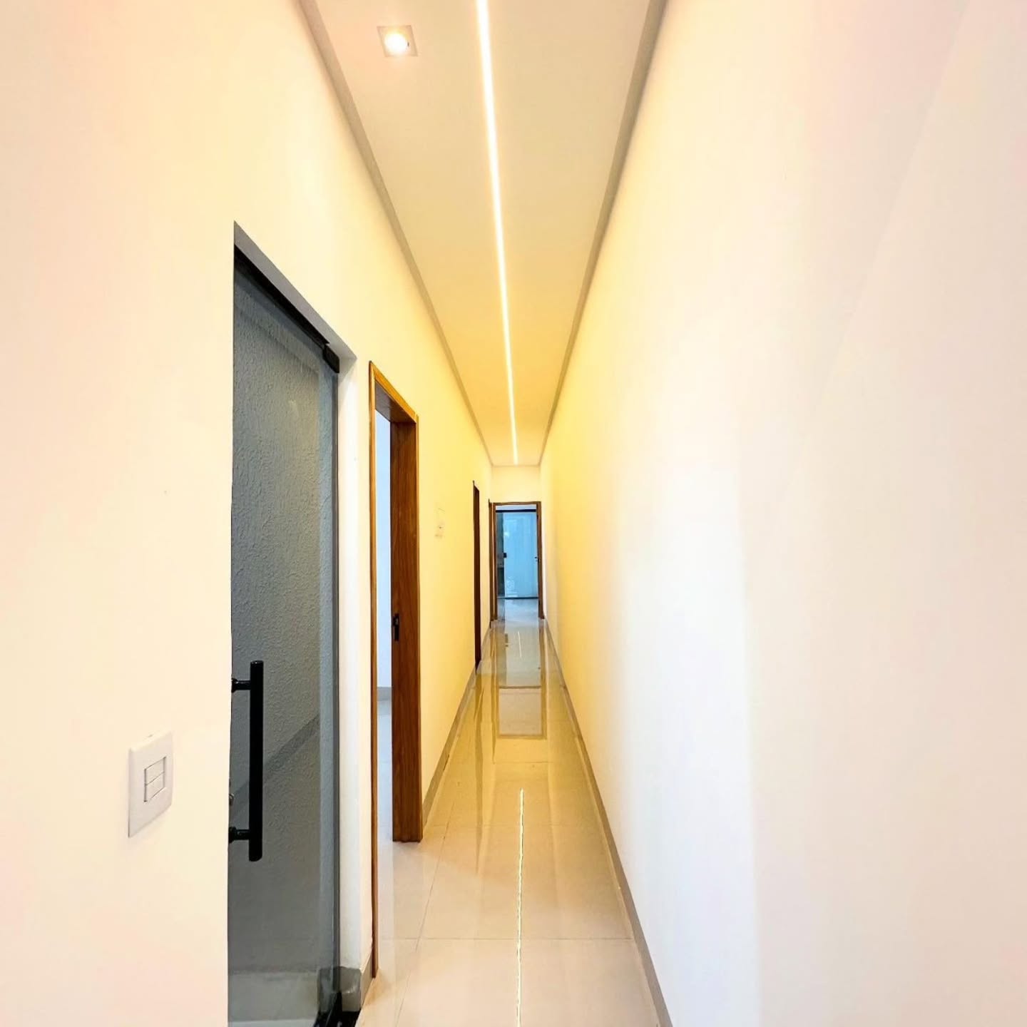 Belíssima casa 3 quartos, sendo uma suíte, banheiro social, nova, em bairro muito bem localizado em Senador Canedo, pertinho de tudo. Acabamento impecável, casa muito segura, com concertinas, portão eletrônico e interfone. Sala ampla, garagem coberta para dois carros, área gourmet com churrasqueira, casa clara e arejada.