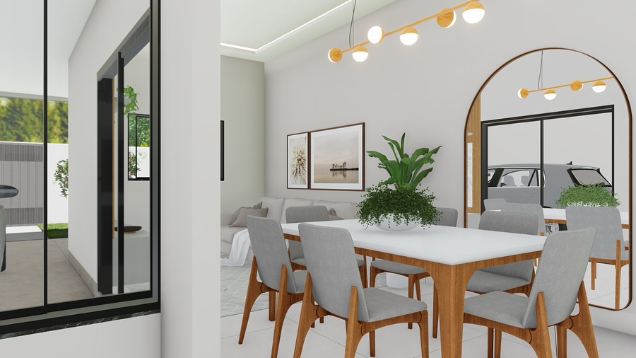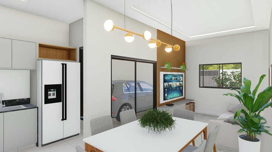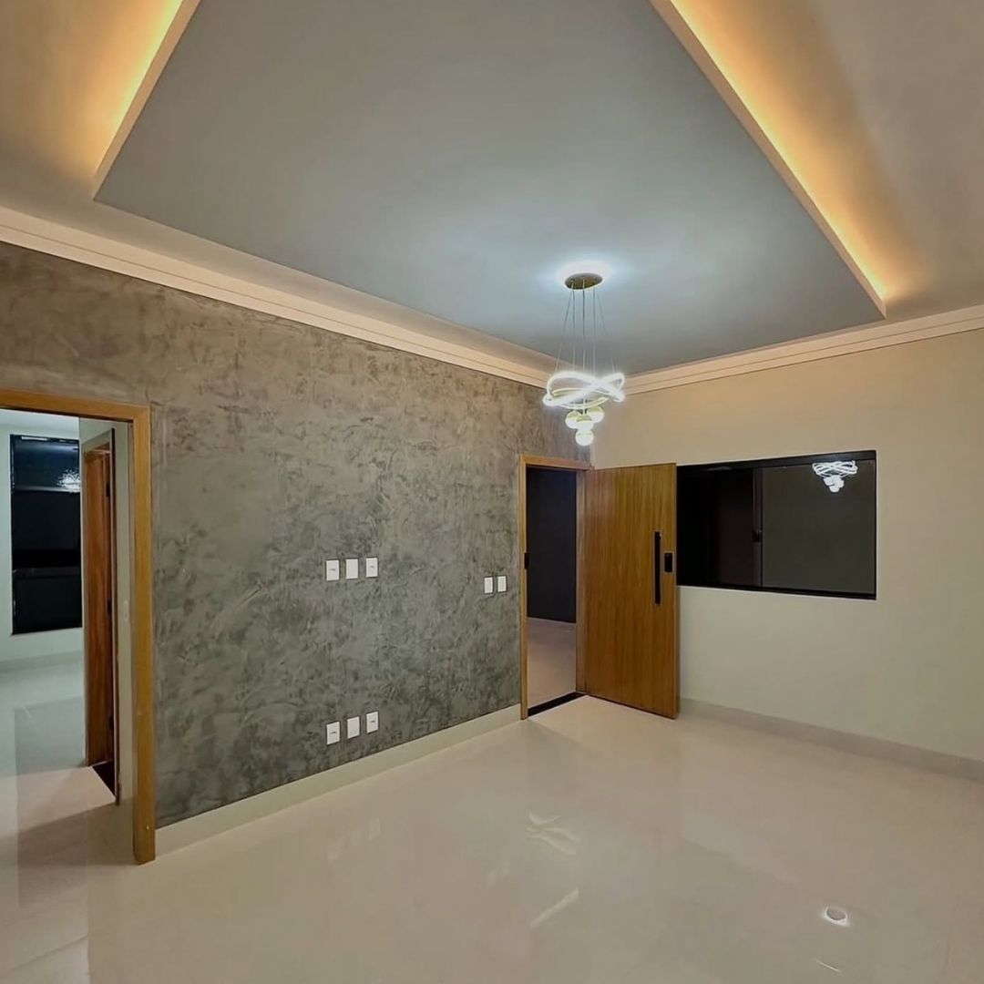 – Sala com painel para TV e sanca rebaixada em todos os cômodos