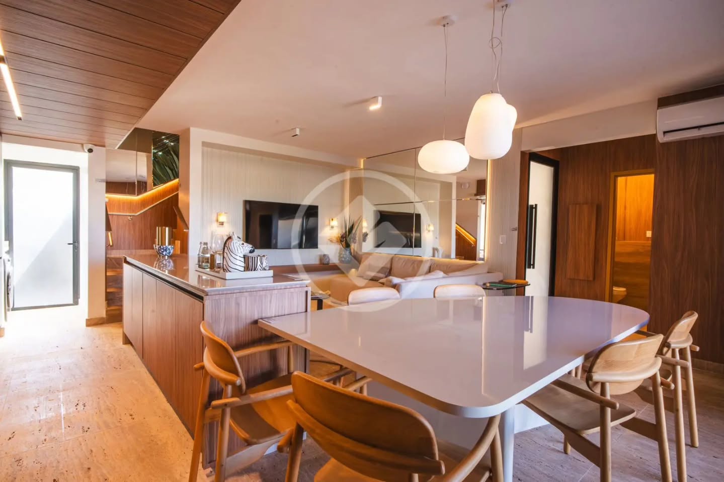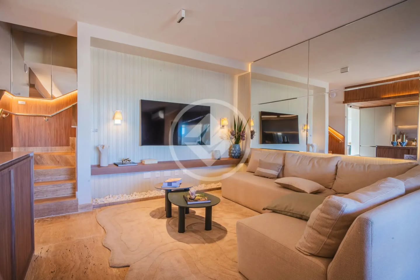 – Sala pé direito duplo com sanca e estúdio rebaixado, rica em leds.