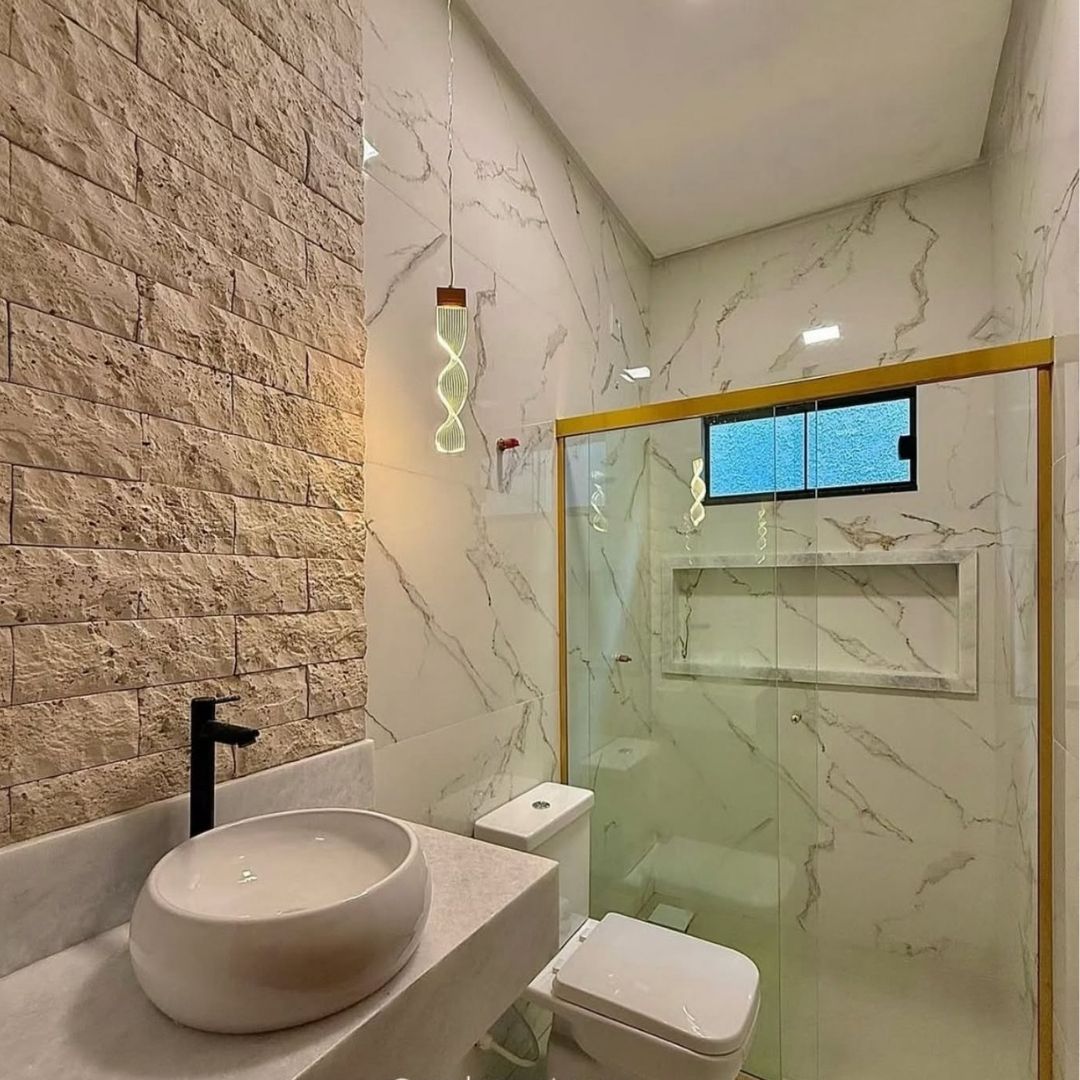 – Piso e revestimentos em porcelanato, com acabamento de primeira qualidade.